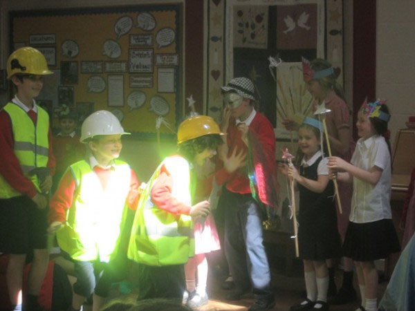We had a fabulous day, and Arabella was highly skilled and inspirational. She managed to include an autistic child in the production (he even spoke a few lines, which was a big surprise to the staff who know him). Also, a child who began the day in tears because he was nervous joined in happily as one of the ‘mechanicals’ . The show was well attended by parents and the rest of KS2: there was much laughter and applause. All in all then, we declare Arabella the new Queen of the Fairies!
