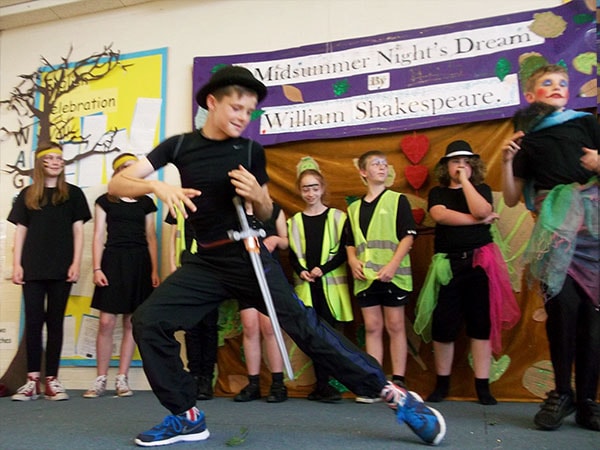 Just a quick email to say how fantastic the Midsummer Night’s Dream ‘Make a Play Day’ was last week when Paul came in to work in our school as part of Y5/6 work on Shakespeare. The workshops inspired both the staff and children and the performance at the end was entertaining and really good fun. We saw a completely different side to some of our children whom we had never known were such ‘budding actors’. Some of our quieter children suddenly had confidence they had not appeared to have before.
